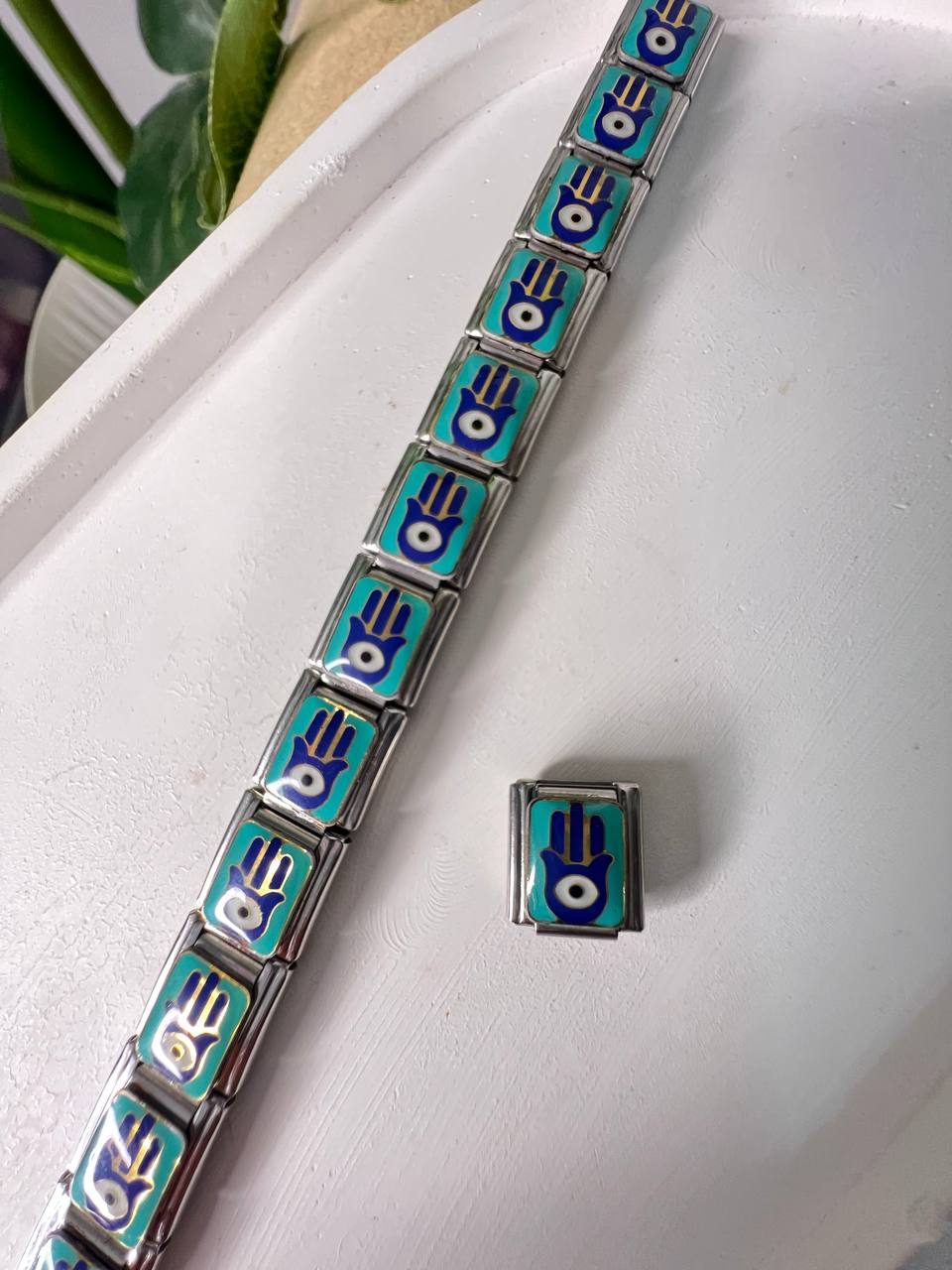 Découvrez notre nomination Main de Fatma bleue en acier inoxydable, symbole de protection et de chance. Son design raffiné, rehaussé d’une touche de bleu, apporte une note mystique et élégante à votre style. Un bijou intemporel alliant spiritualité et modernité, idéal pour toutes les occasions.